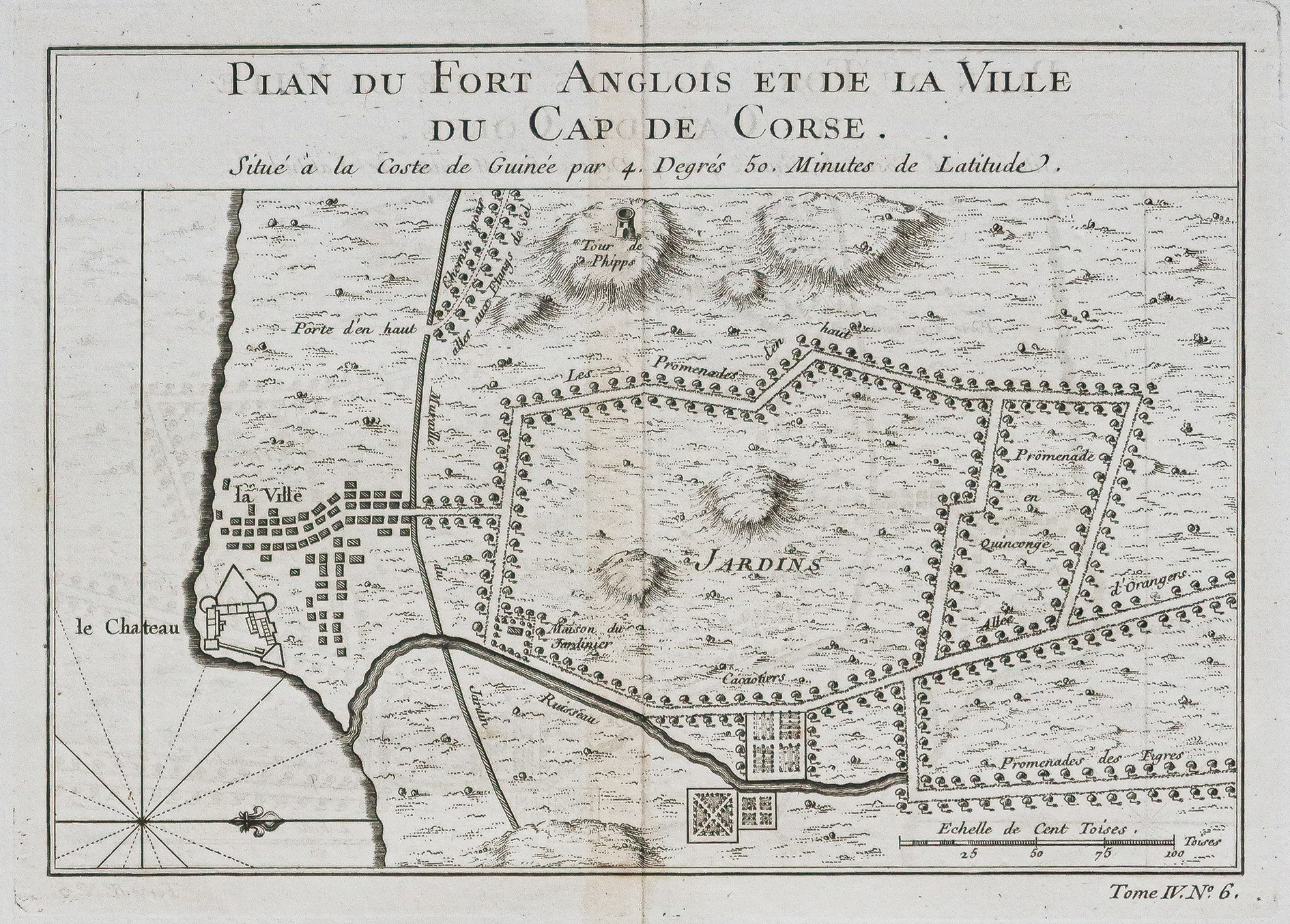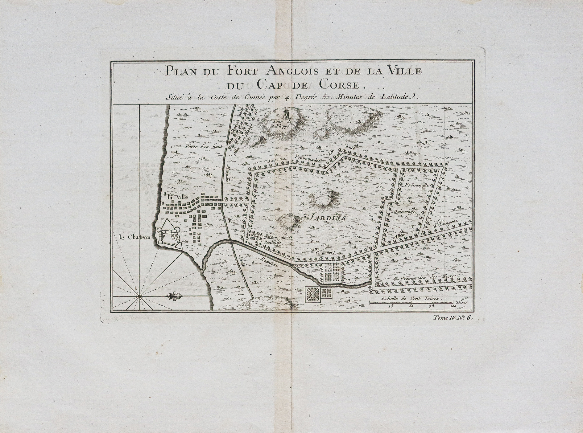 Echelle des lieux. Boussole. Plan du Fort Anglois et de la ville du cap de Corse.