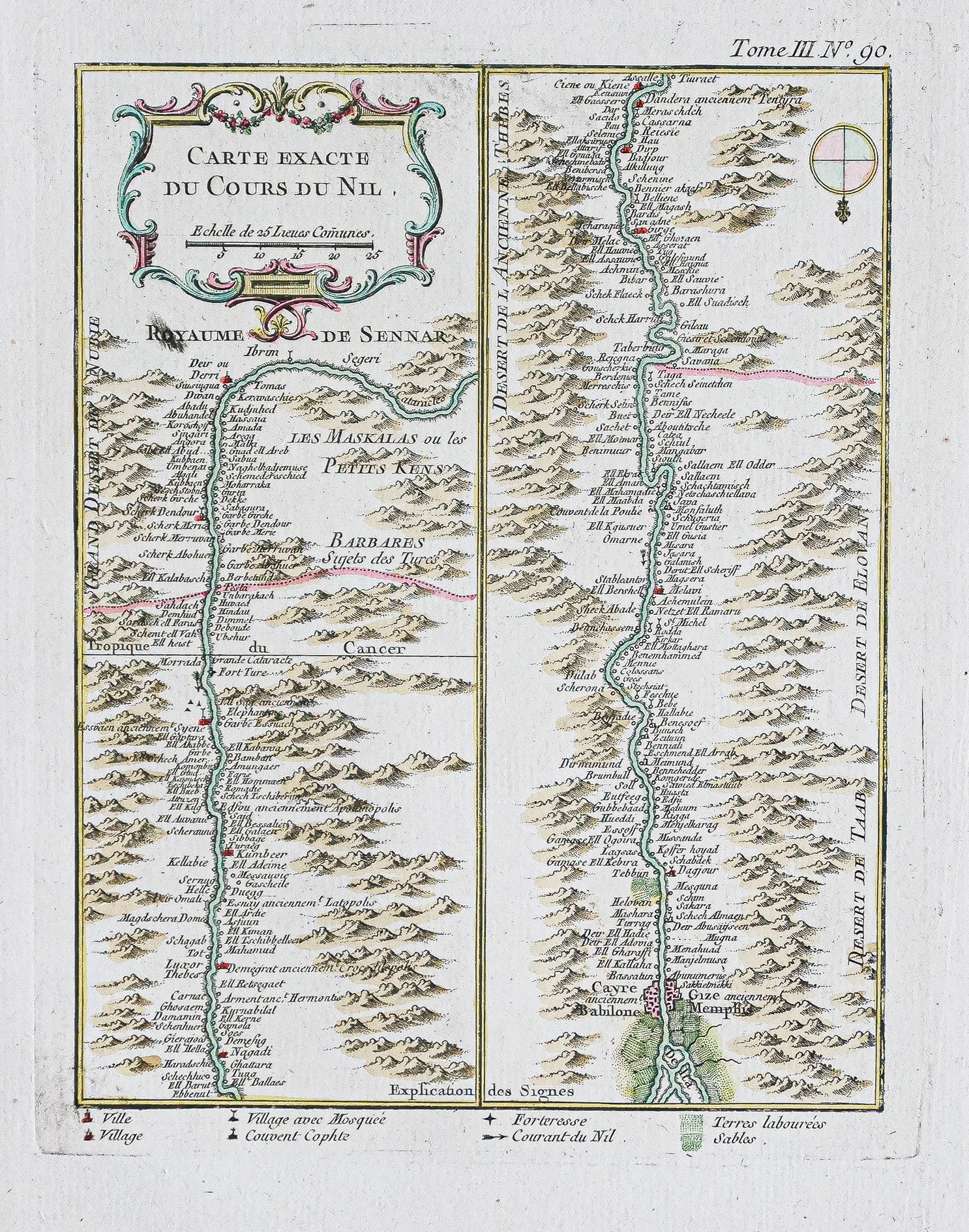 Boussole. Carte peu courante représentant le Nil en 2 tableaux.
