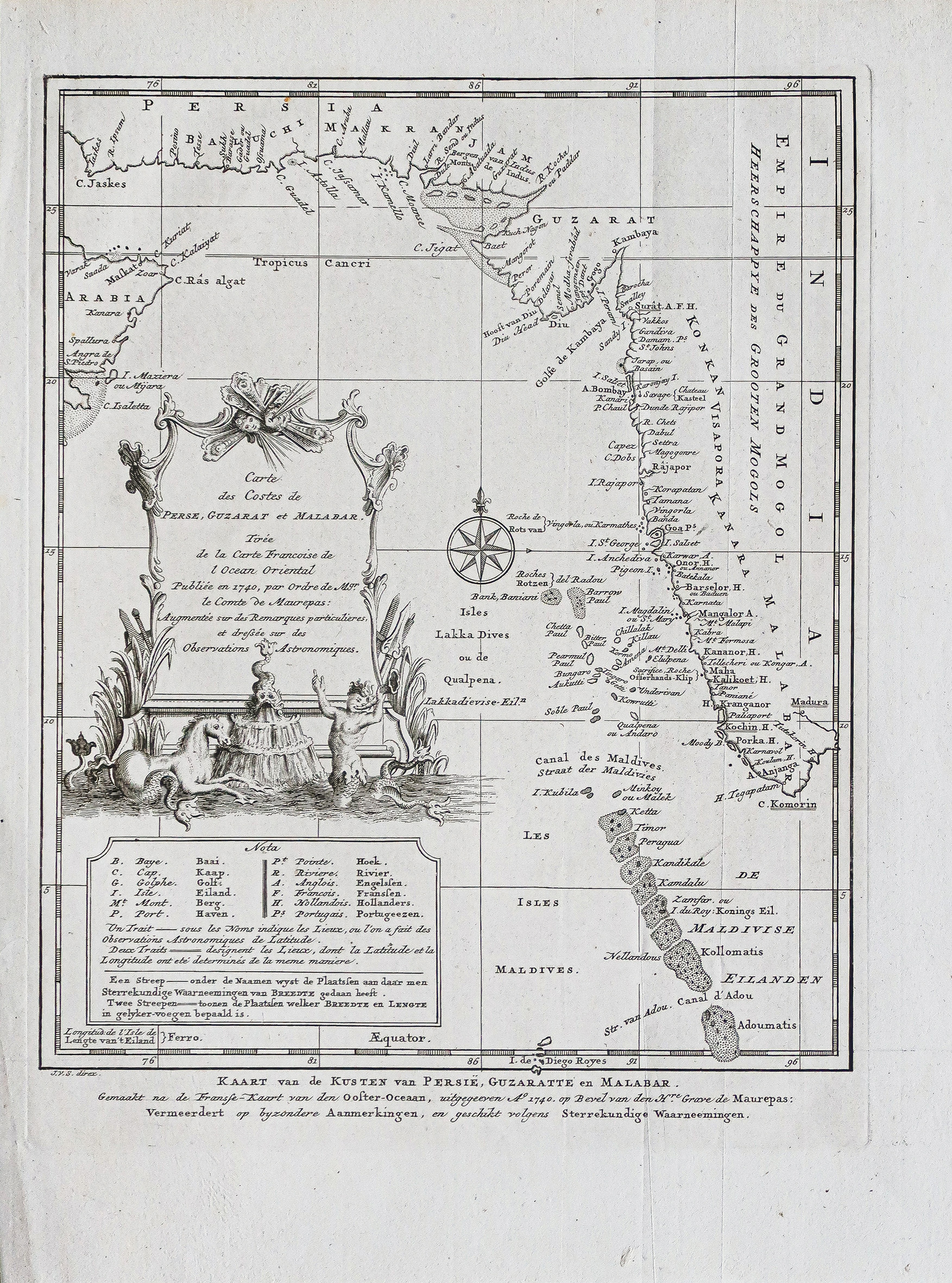 Carte de la Perse, du Gujarat et des côtes de Malabar, de l’Arabie à l’Inde.