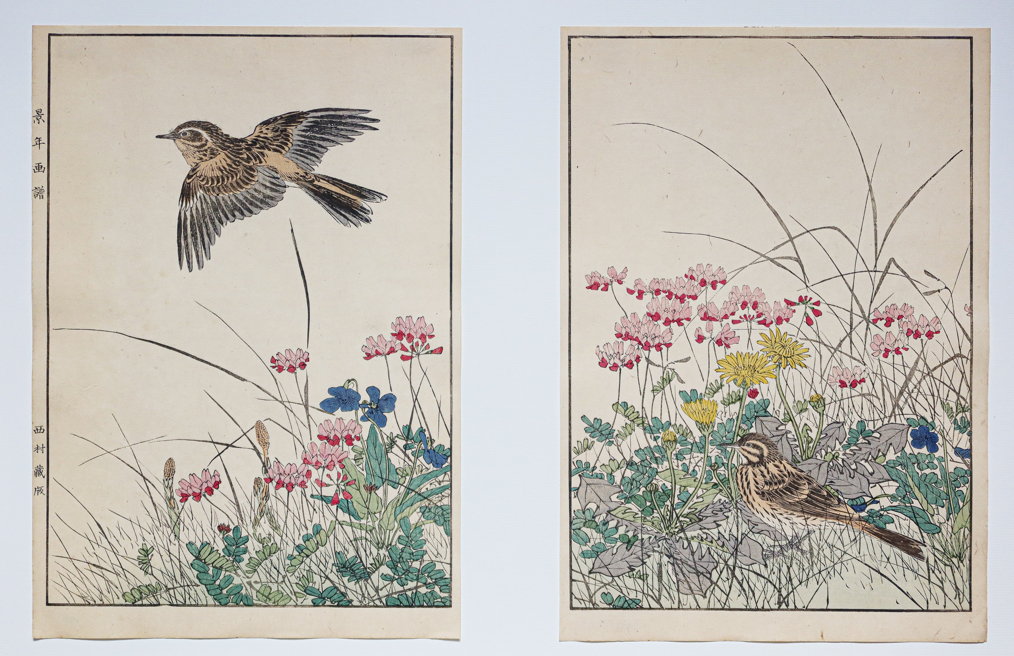 Originaire de Kyoto, Keinen Imao (1845-1924) fut l’un des chefs de file du mouvement shin-hanga (littéralement « nouvelles gravures », parfois traduit en « renouveau pictural »). Cette série d’estampes représentant des oiseaux dans leur habitat naturel, accompagnés de la flore japonaise est la plus célèbre de Keiken.