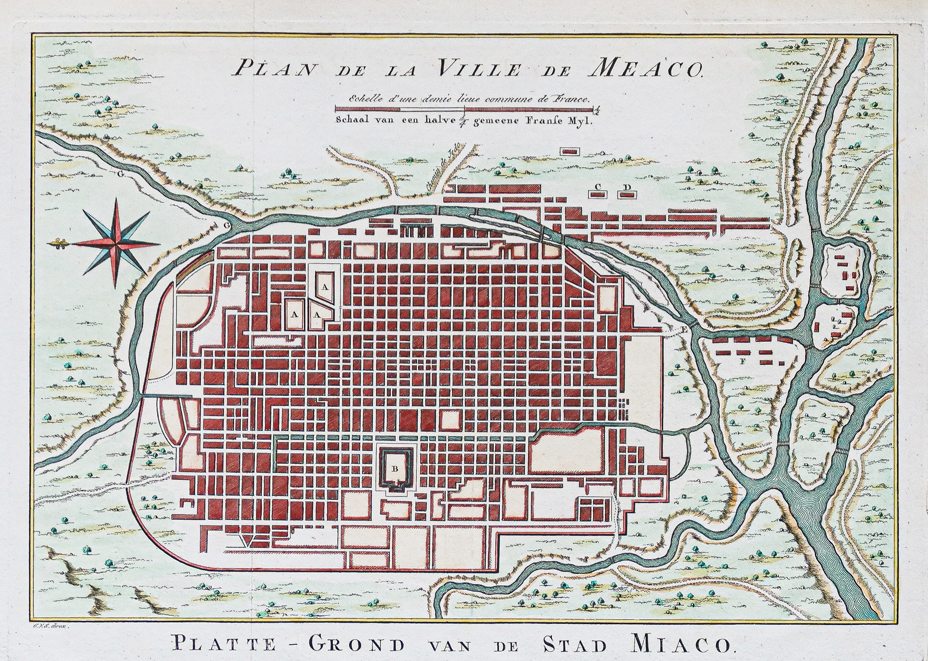 Plan ancien de la ville de Kyoto – Meaco – Japon
