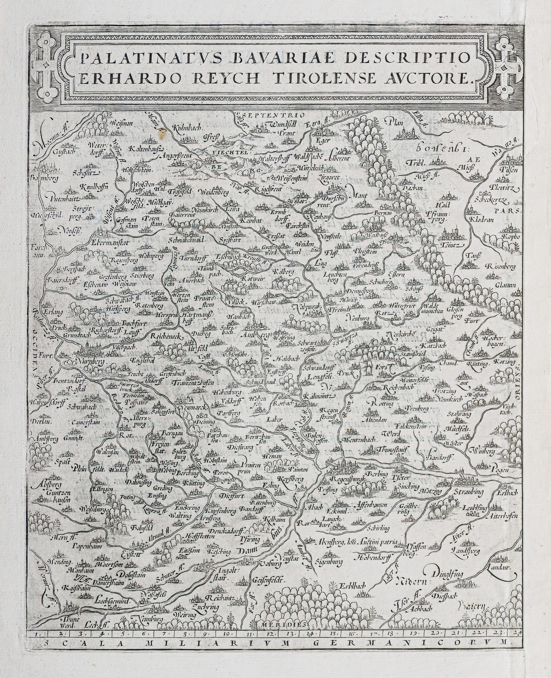 Epreuve originale gravée en 1640. Dankert géographe. Rousseurs fines dans les marges avec 2 consolidations n’atteignant pas la carte. Fine trace de pli vertical sur la gauche du cartouche. Bon état. Format feuille : 53 x 42 cm. Format gravure : 48,5 x 38,5 cm. Original antique map of 1640. Belle impression réalisée par Philippe Apian. Cartouche décoratif daté 1632. Echelle de mesure.