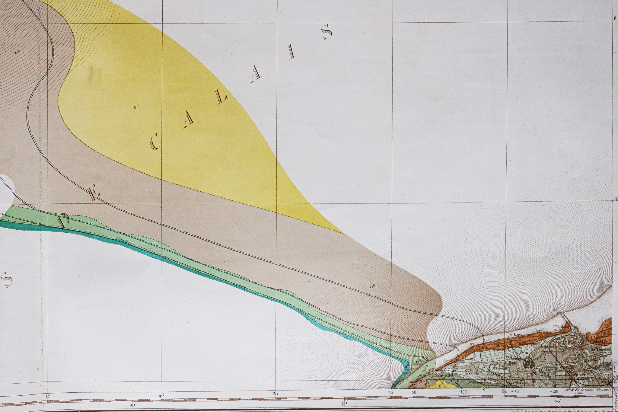 Carte géologique détaillée des environs de Calais, exécutée sur la carte topographique d’Etat-Major par le service géologique des mines, publiée par le Ministère des Travaux Publics.