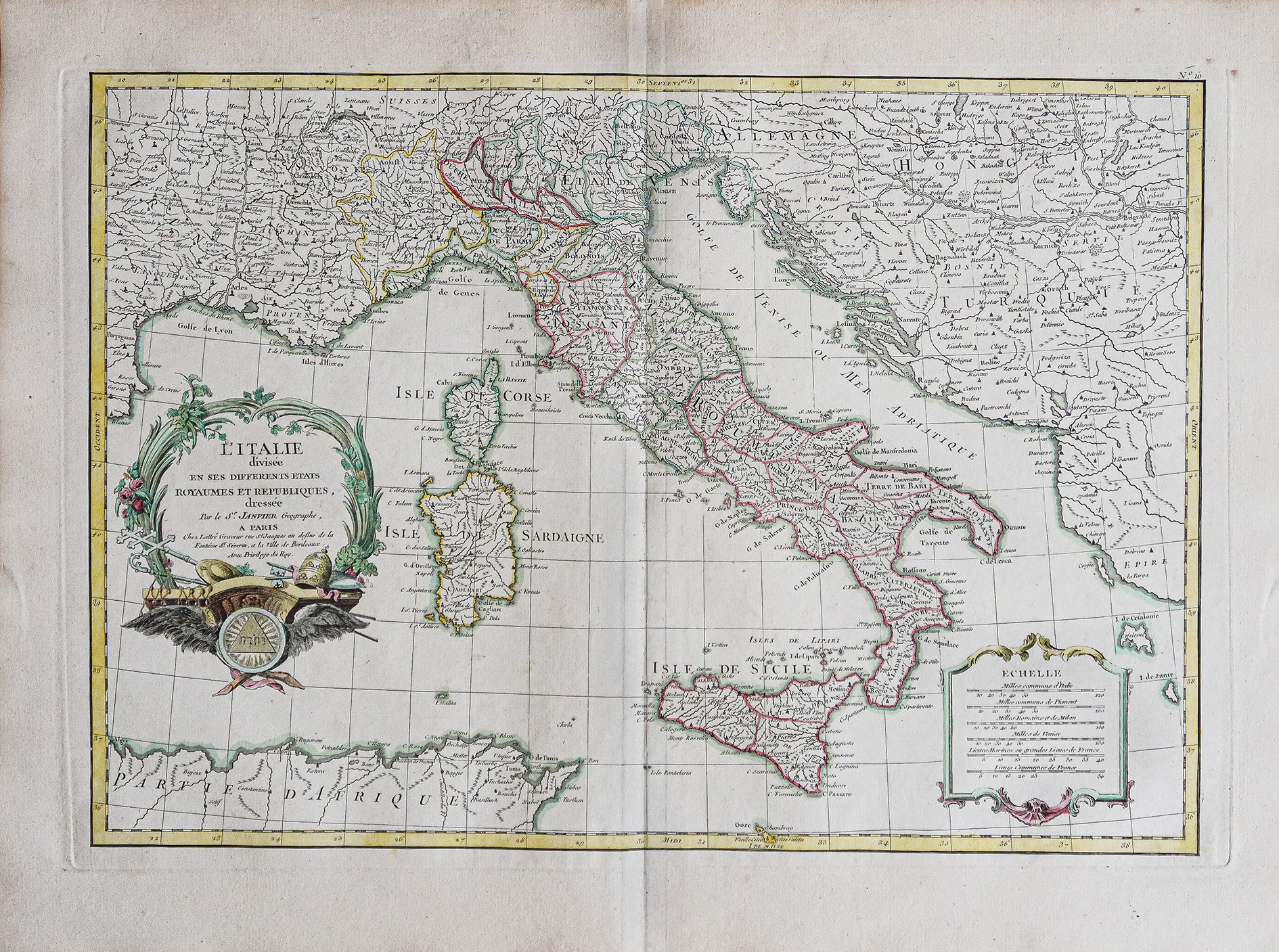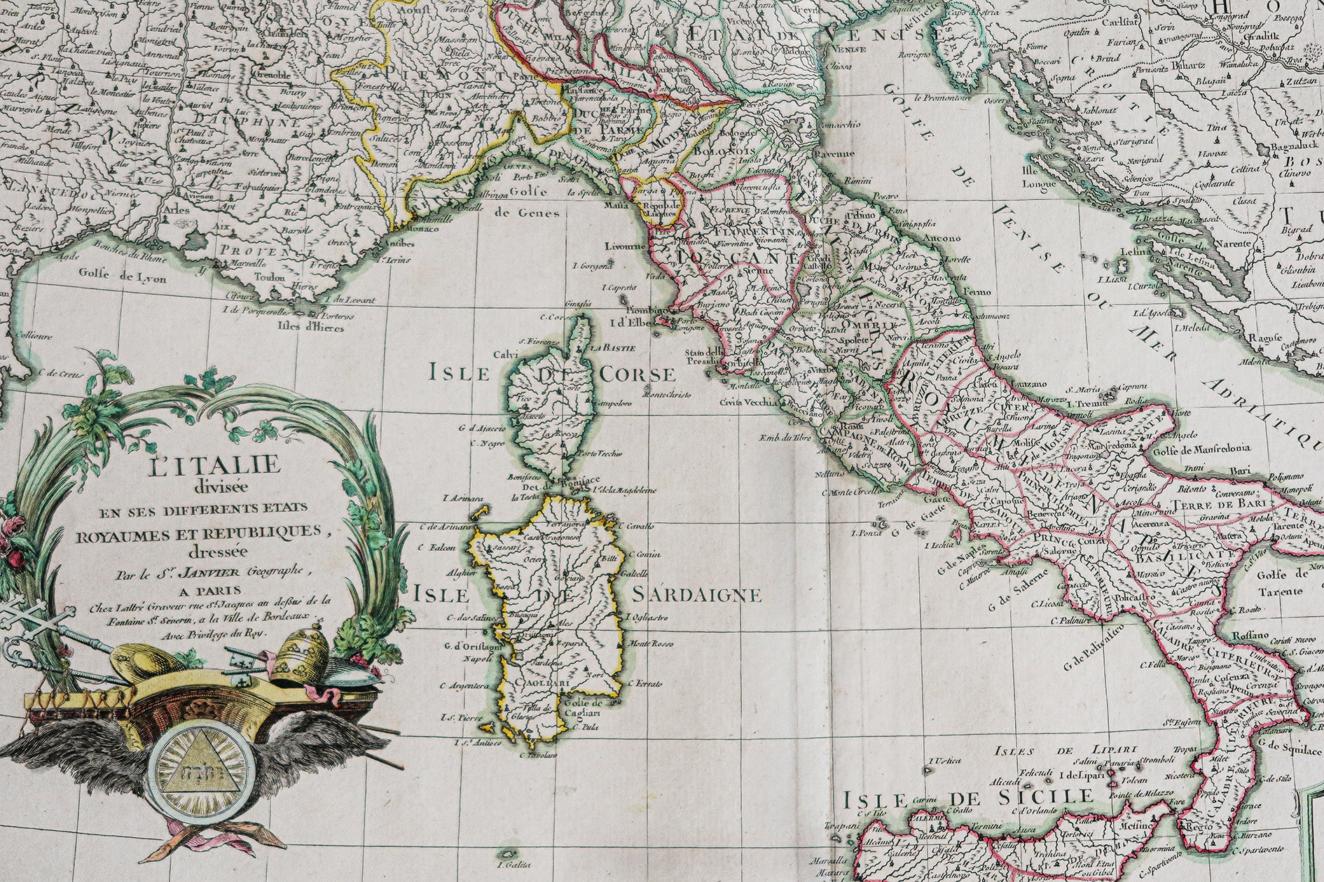 Jean Janvier était un cartographe français qui travailla à Paris dans la seconde moitié du XVIIIe siècle. Parmi ses œuvres figurent de belles cartes parues dans l’Atlas Moderne de Jean Lattré . Cet atlas contenait des cartes du monde entier, gravées par Lattré, graveur ordinaire du Roi. Les cartes de Janvier présentaient les meilleures informations disponibles à l’époque.