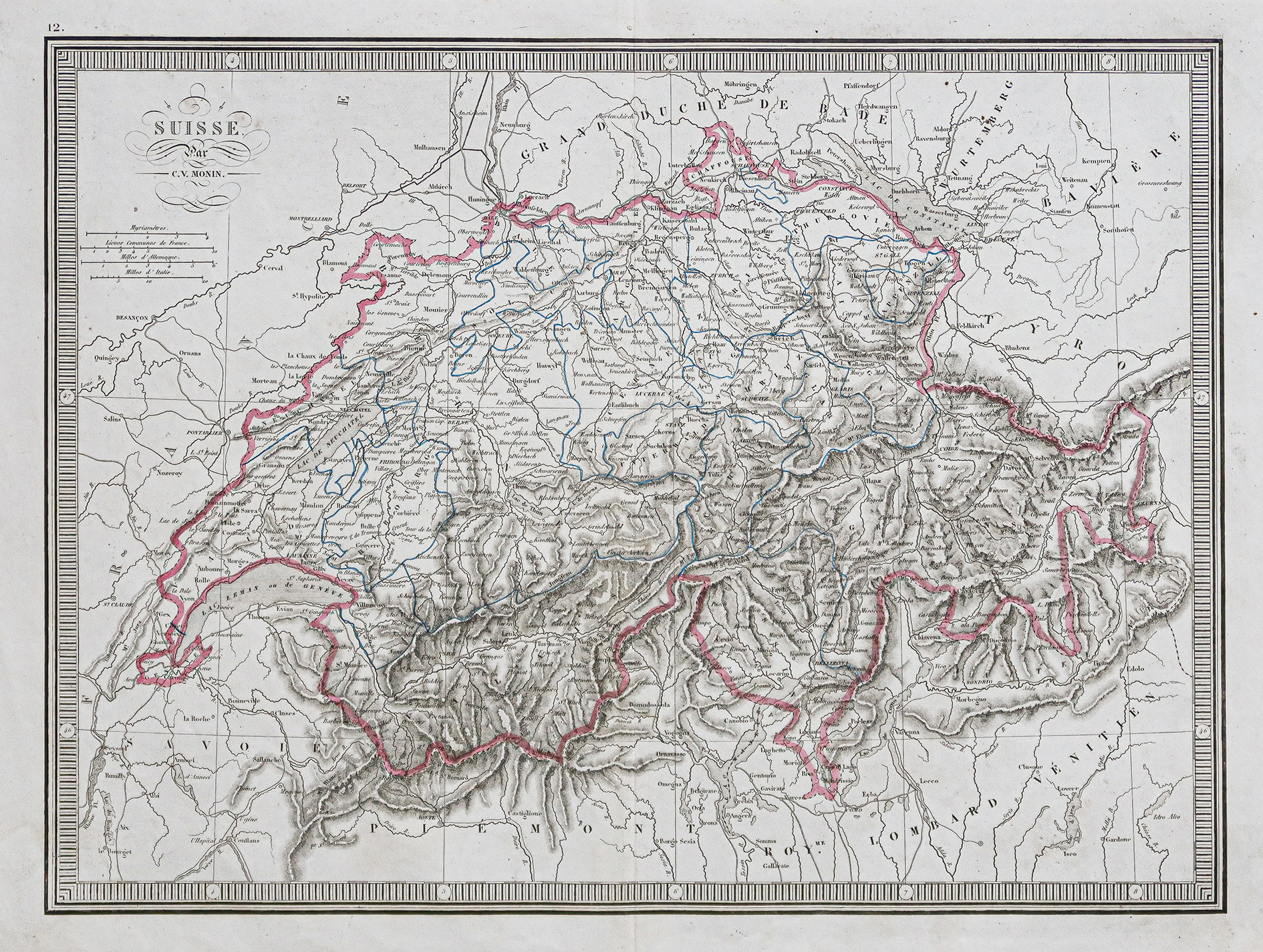 Charles V. Monin était un éditeur de cartes français actif du début au milieu du XIXe siècle. Imprimeur novateur, il fut l’un des premiers cartographes en Europe à exploiter le procédé lithographique récemment découvert.
