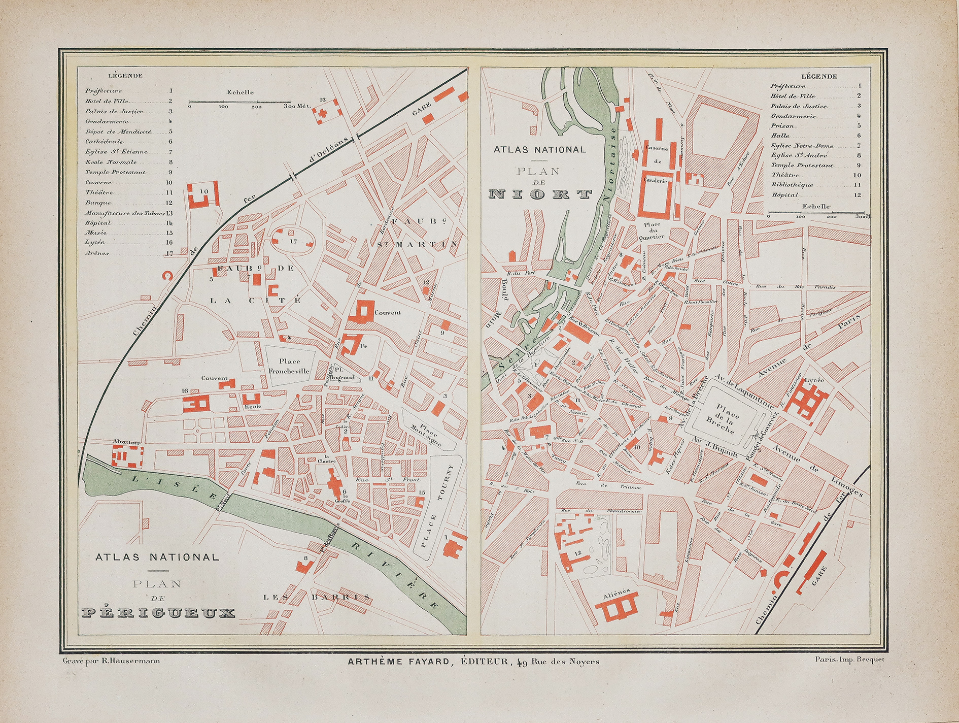 Plan ancien de la ville de Périgueux et Niort