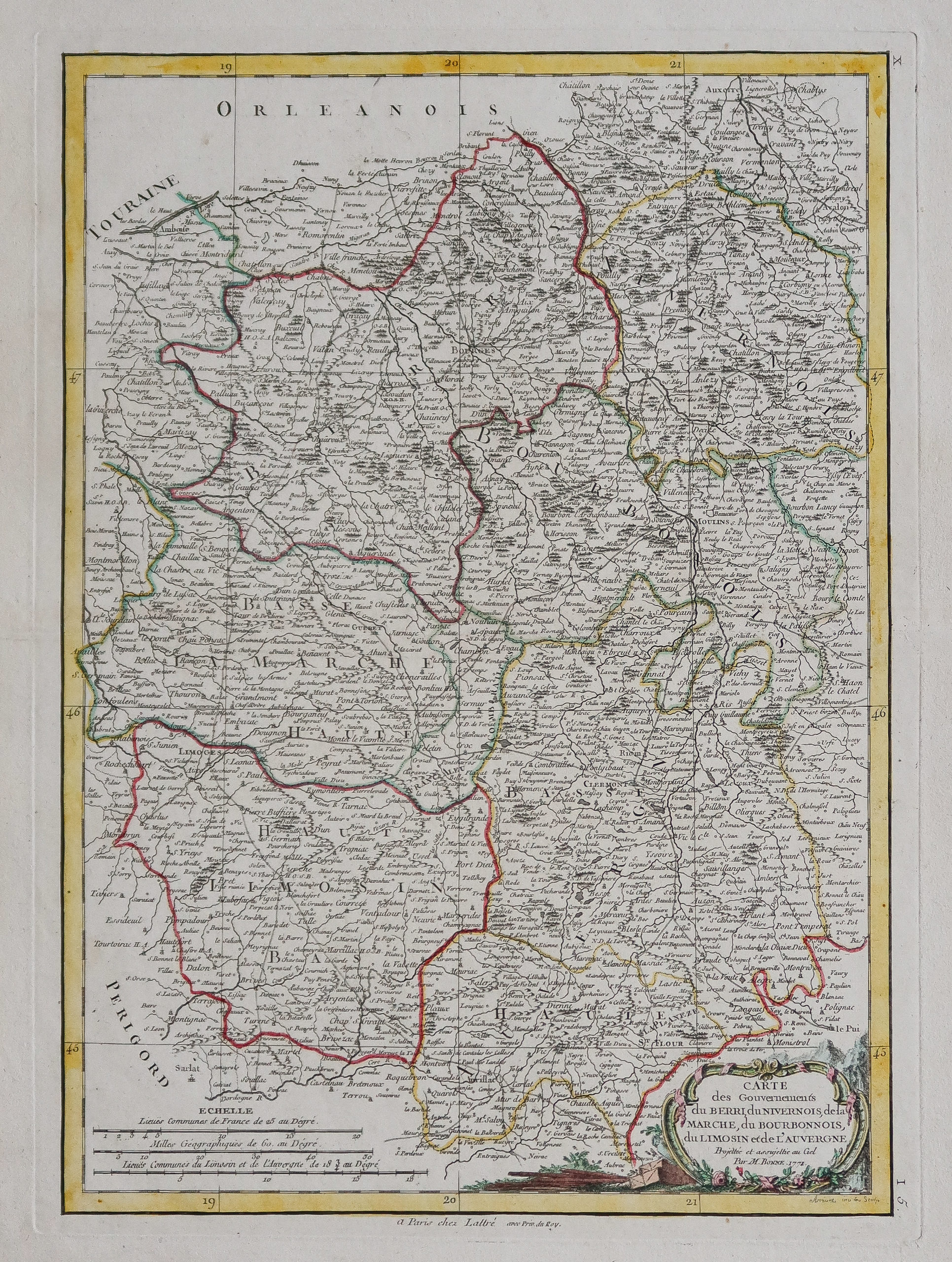 Carte ancienne du Limousin – Centre – Bourgogne – Auvergne