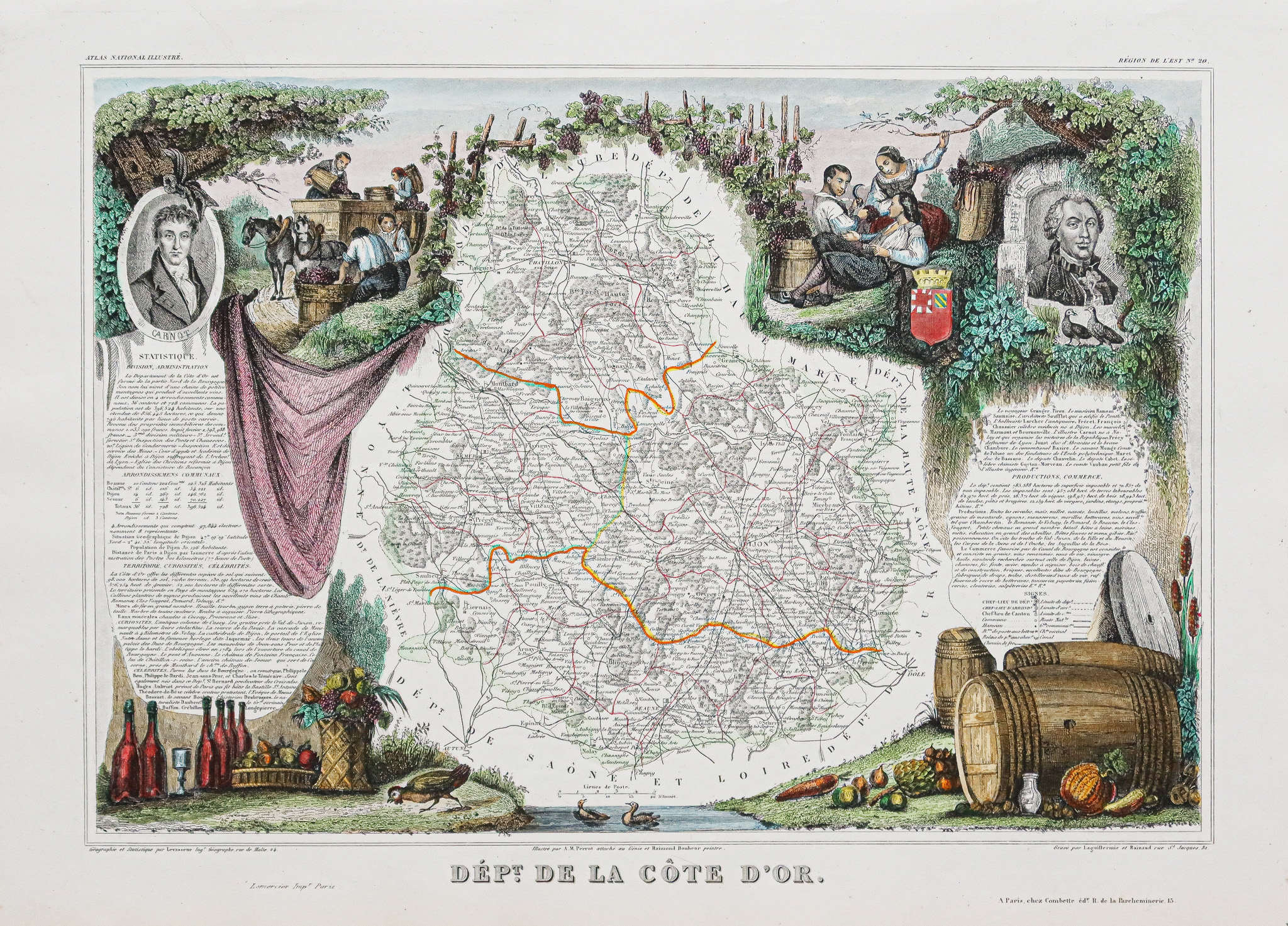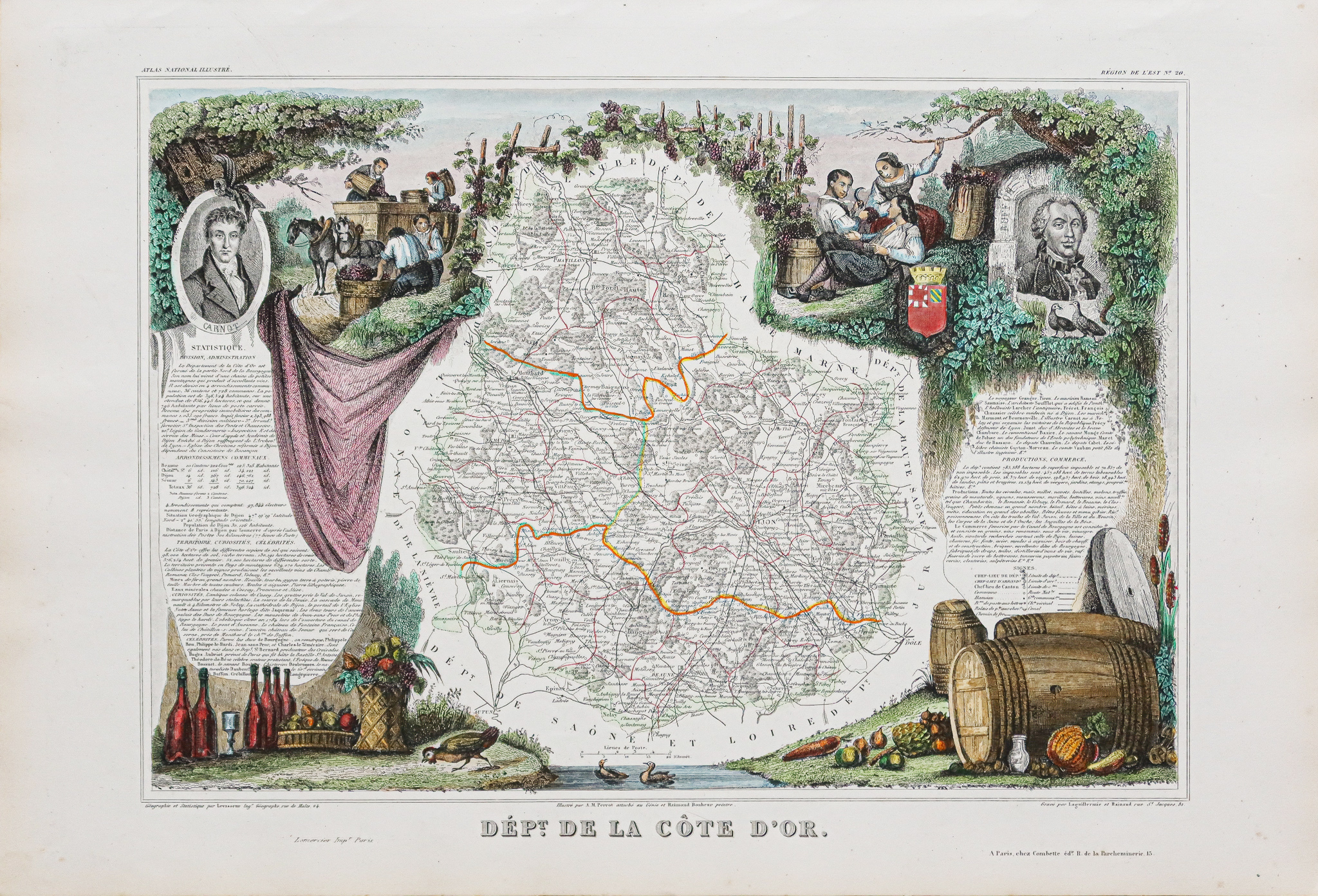 Célèbre édition du milieu du 19ème siècle publiée rue Saint Jacques à Paris, illustrée de commentaires sur les divisions administratives, curiosités, production, commerce et célébrités.