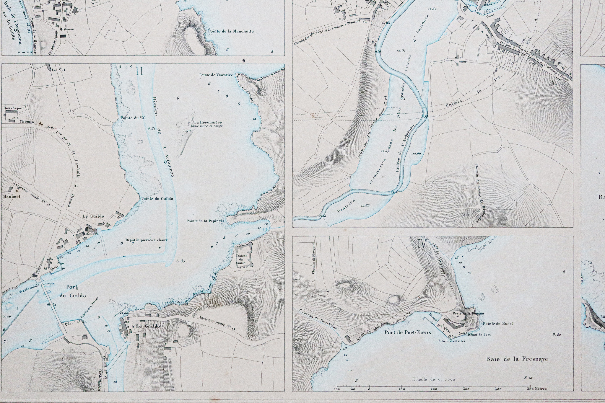 Les côtes septentrionales de la France. Levées de 1833 à 1836, par les ingénieurs Hydrographes de la marine sous les ordres de Mr Beautemps Beaupré. Gravure originale réalisée en 1841. Beaux coloris aquarelle. Très bon état. Format feuille : 47 x 32 cm. Format gravure : 36,5 x 26,5 cm. Original antique map of 1841