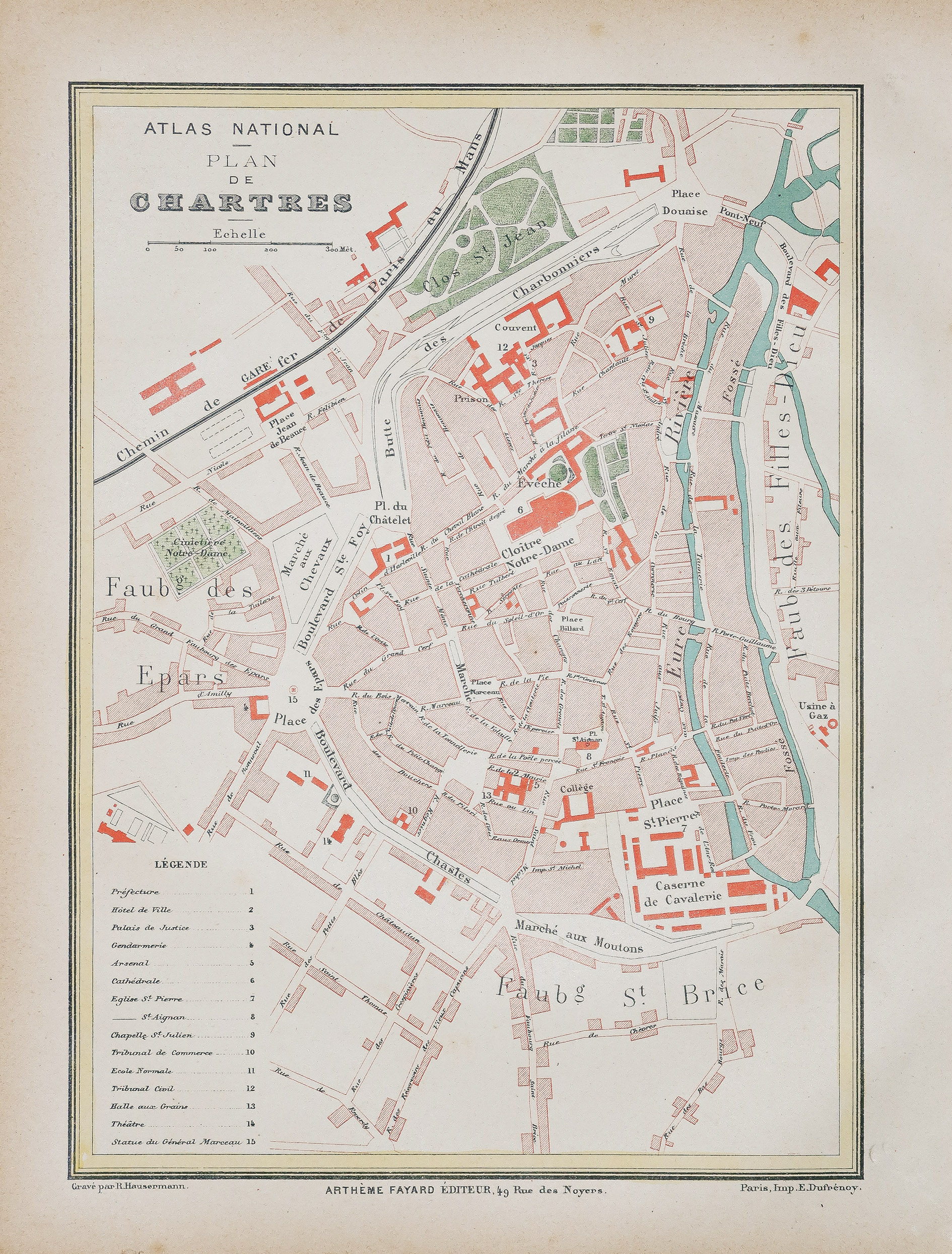 Carte originale gravée en 1880. Beaux cartouches colorés à l’aquarelle. Très bon état. Format feuille : 34,5 x 26 cm. Original antique map of 1880. Edition de la fin du 19ème siècle, gravée par Legénisel et Barbier, illustrant les départements français et d’Outre-mer, agrémentée de vignettes aquarellées du chef-lieu, curiosités et personnages célèbres.