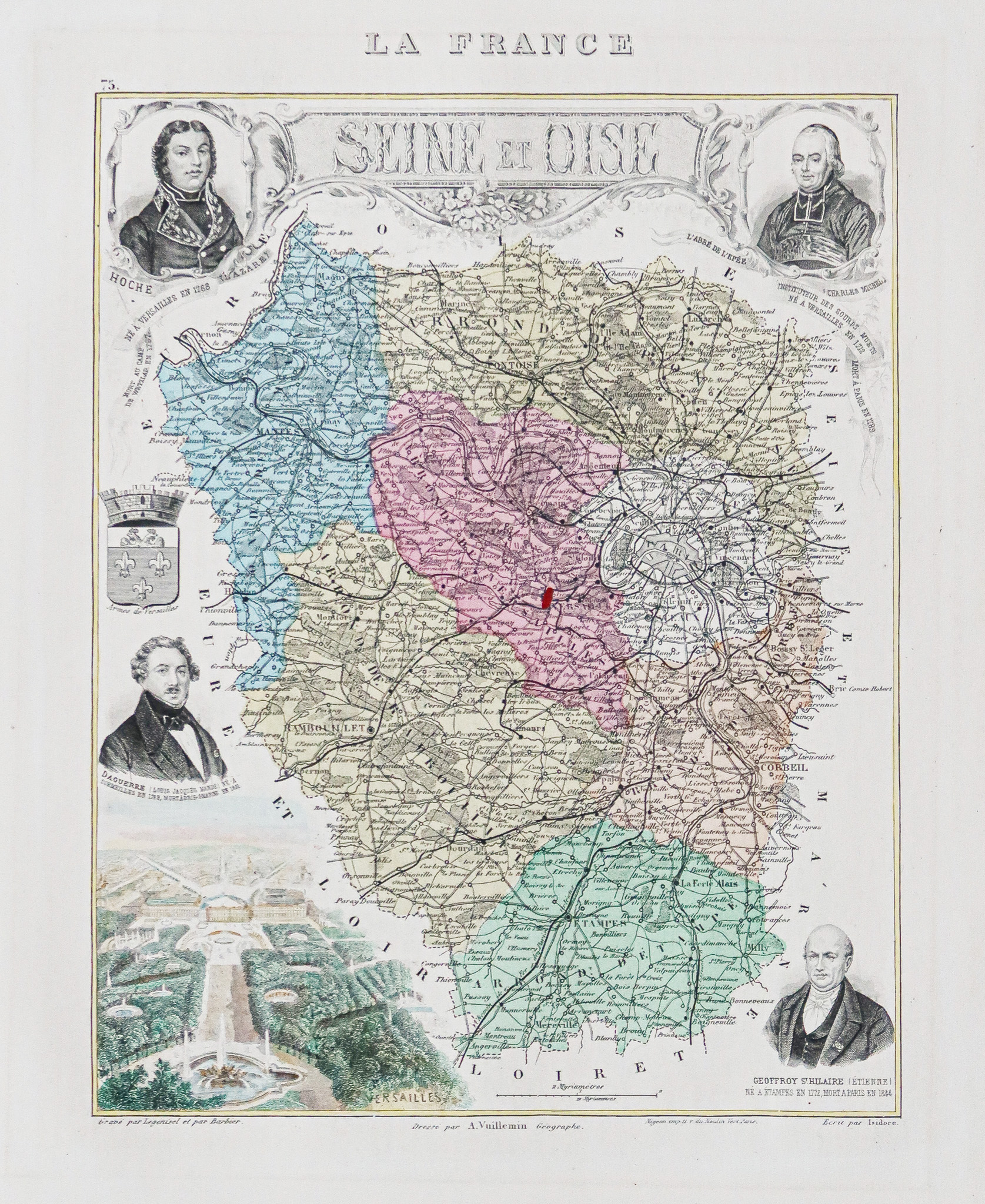 Edition de la fin du 19ème siècle, gravée par Legenisel et Barbier, illustrant les départements français et d’Outre-mer, agrémentée de vignettes aquarellées du chef-lieu, curiosités et personnages célèbres.