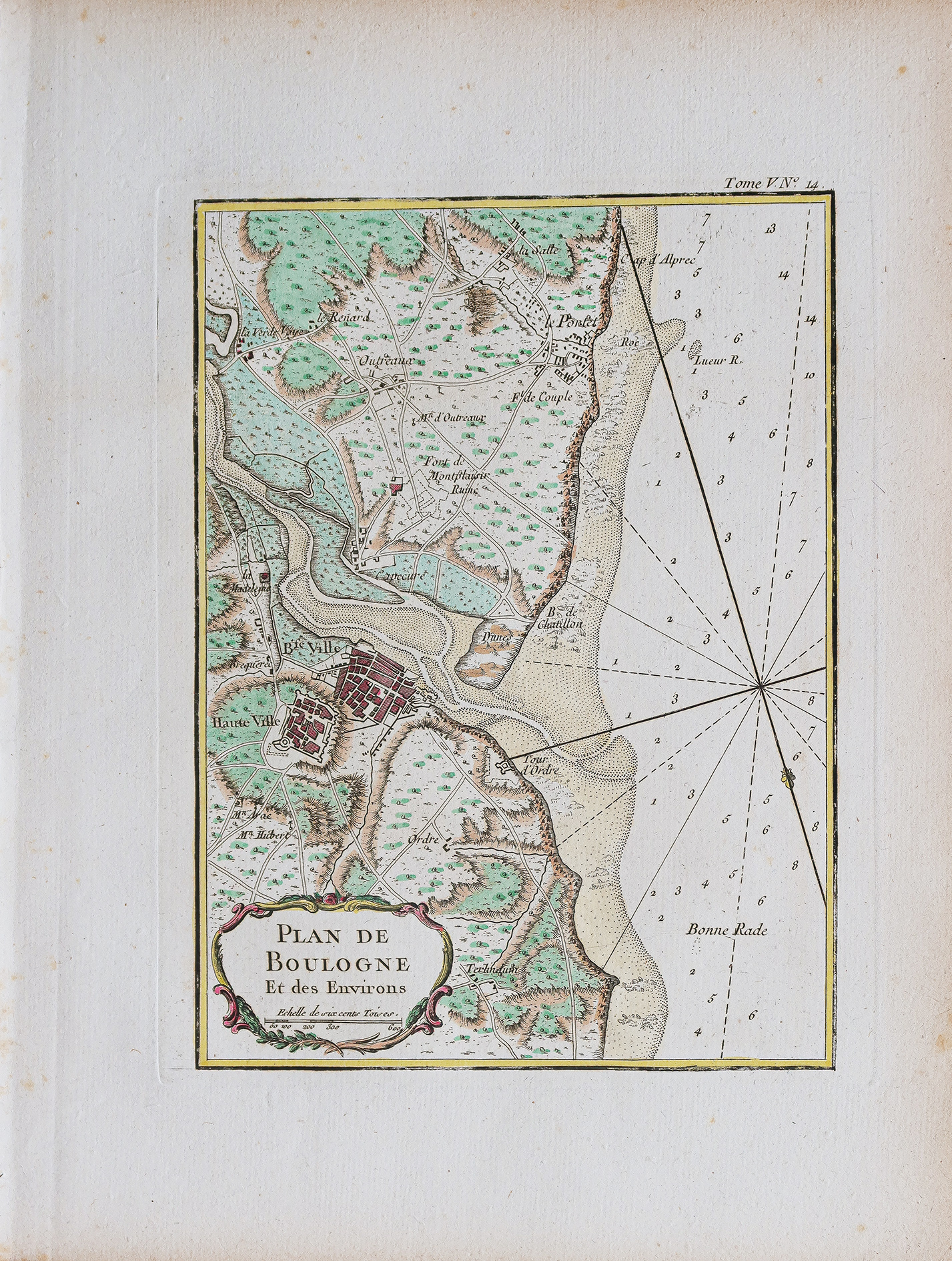 Epreuve originale réalisée en 1802 - 1803. Plages et bancs de sable rehaussés à l'aquarelle. Très bon état. Format feuille : 64,5 x 95 cm. Format gravure : 63 x 92,2 cm. Original antique map of 1802 - 1803. Large cartouche expliquant l'établissement des marées. Large boussole décorative.