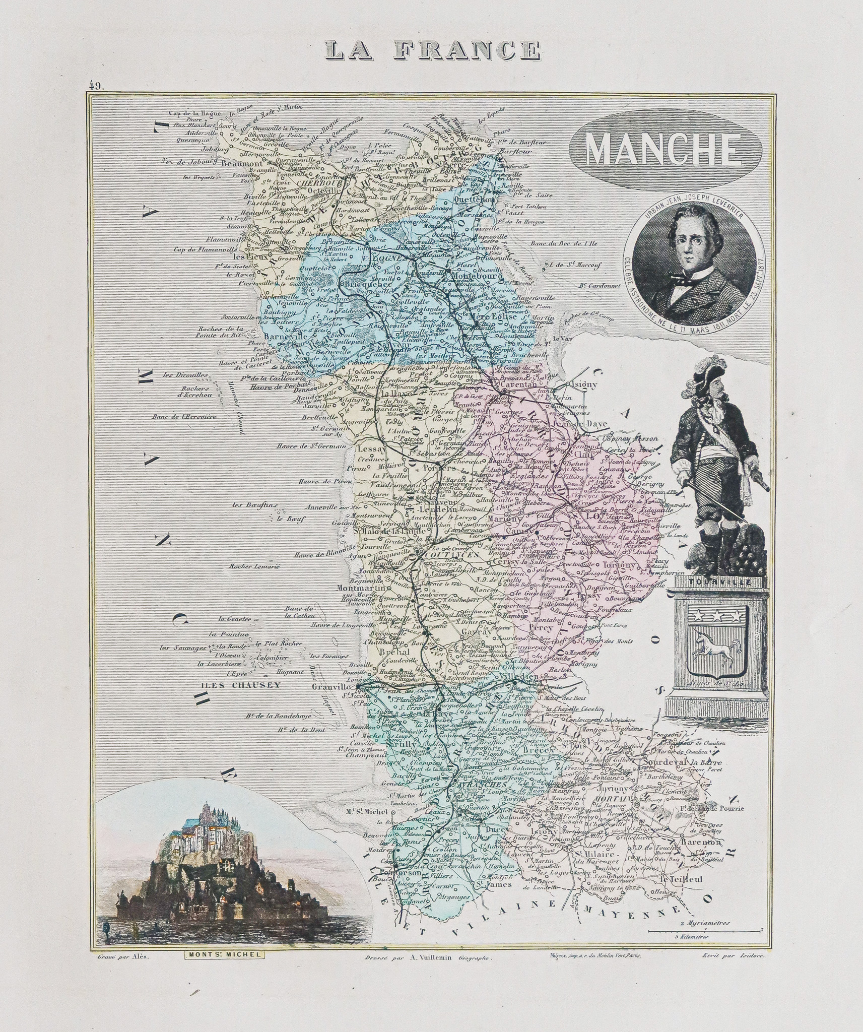 Carte géographique ancienne du département de la Manche