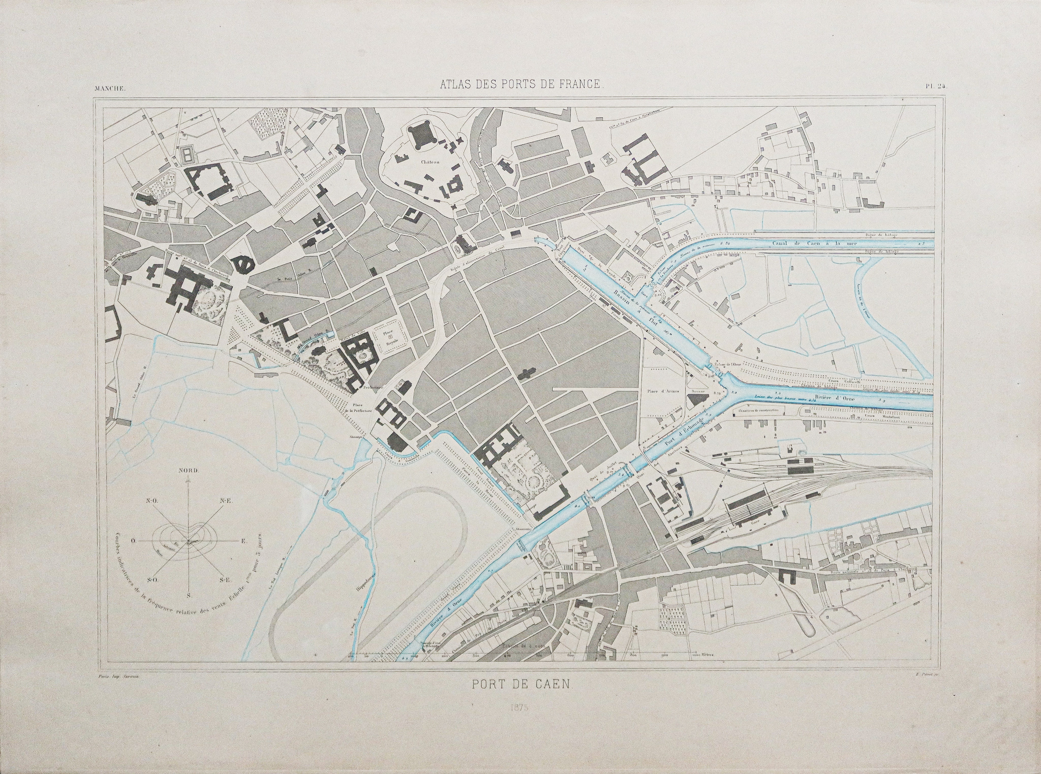 Carte marine ancienne du port de Caen
