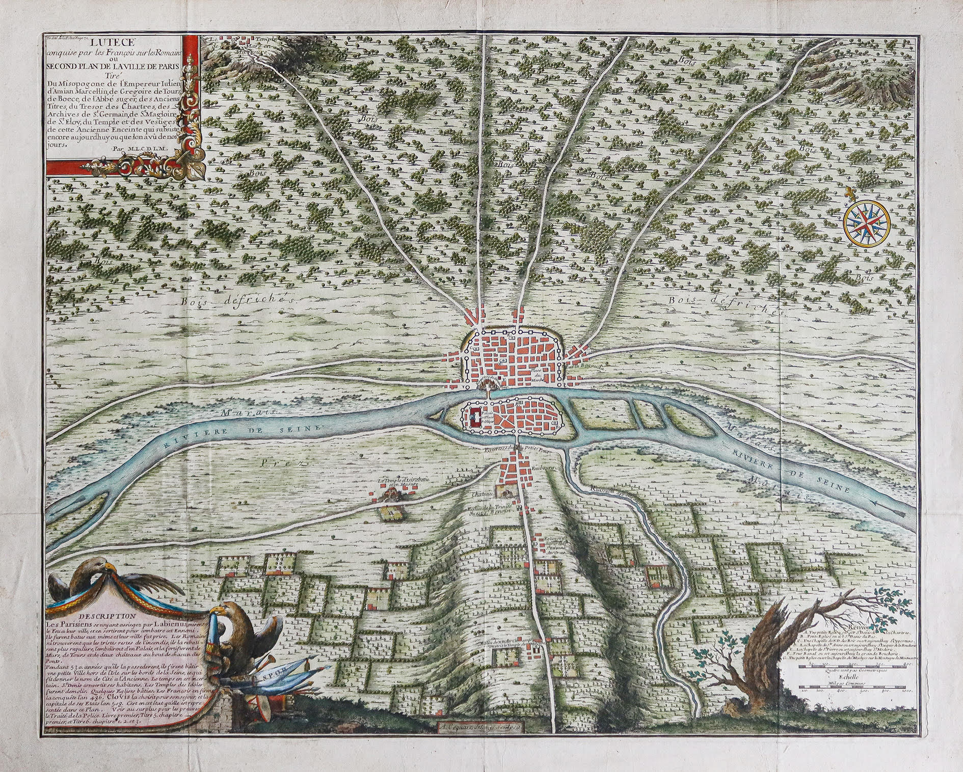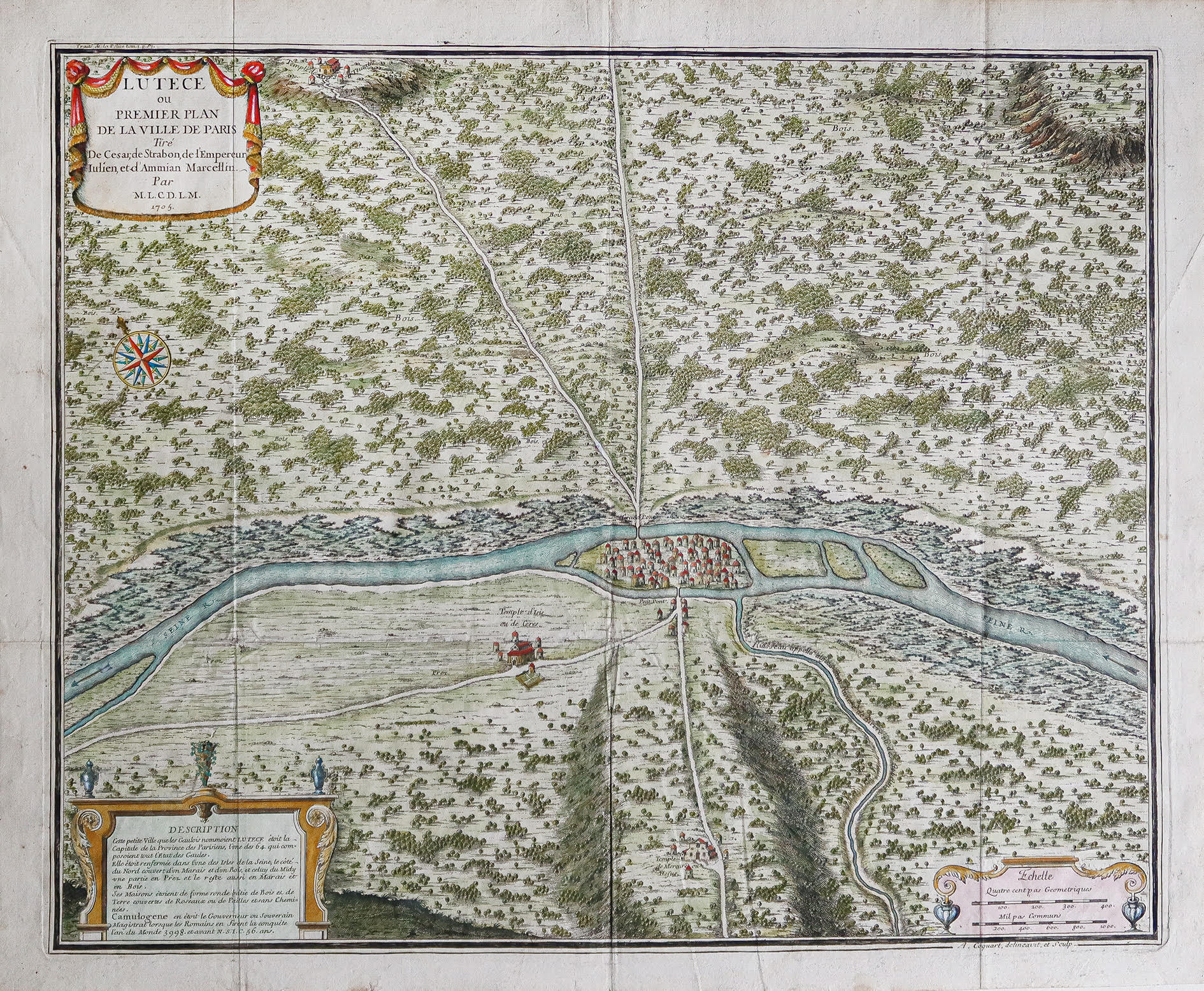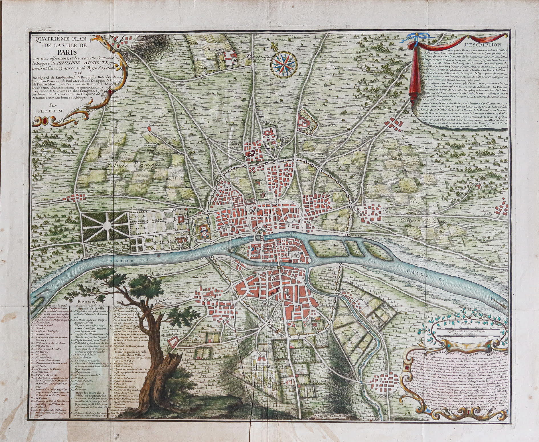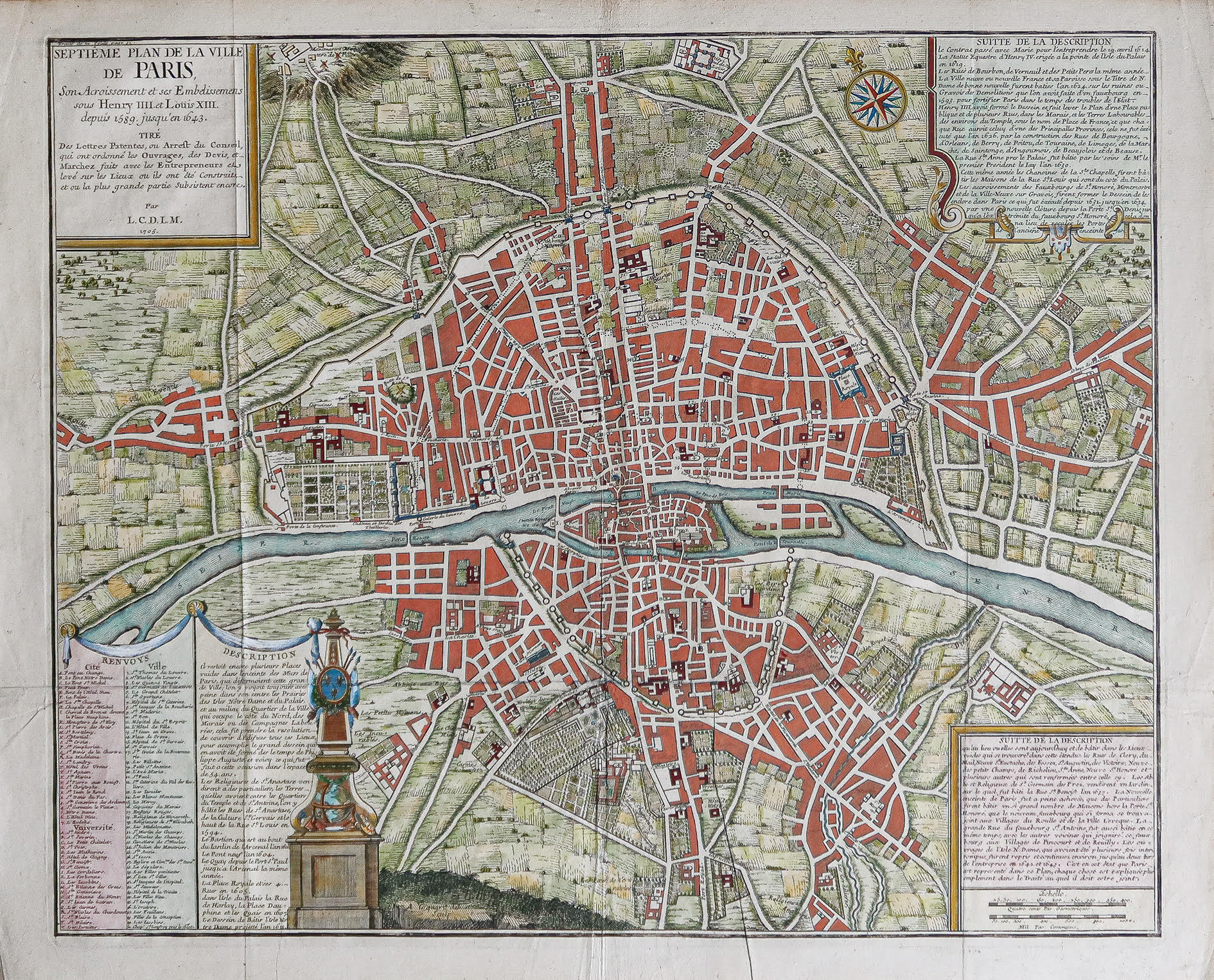 Chaque plan comporte d’élégants cartouches avec des titres, des légendes et des textes descriptifs. Ces plans constituent une compilation historique précieuse qui nous permet de retracer l’expansion et le développement de la ville depuis l’époque romaine jusqu’au début du 18ème siècle, en passant par la quatrième enceinte.