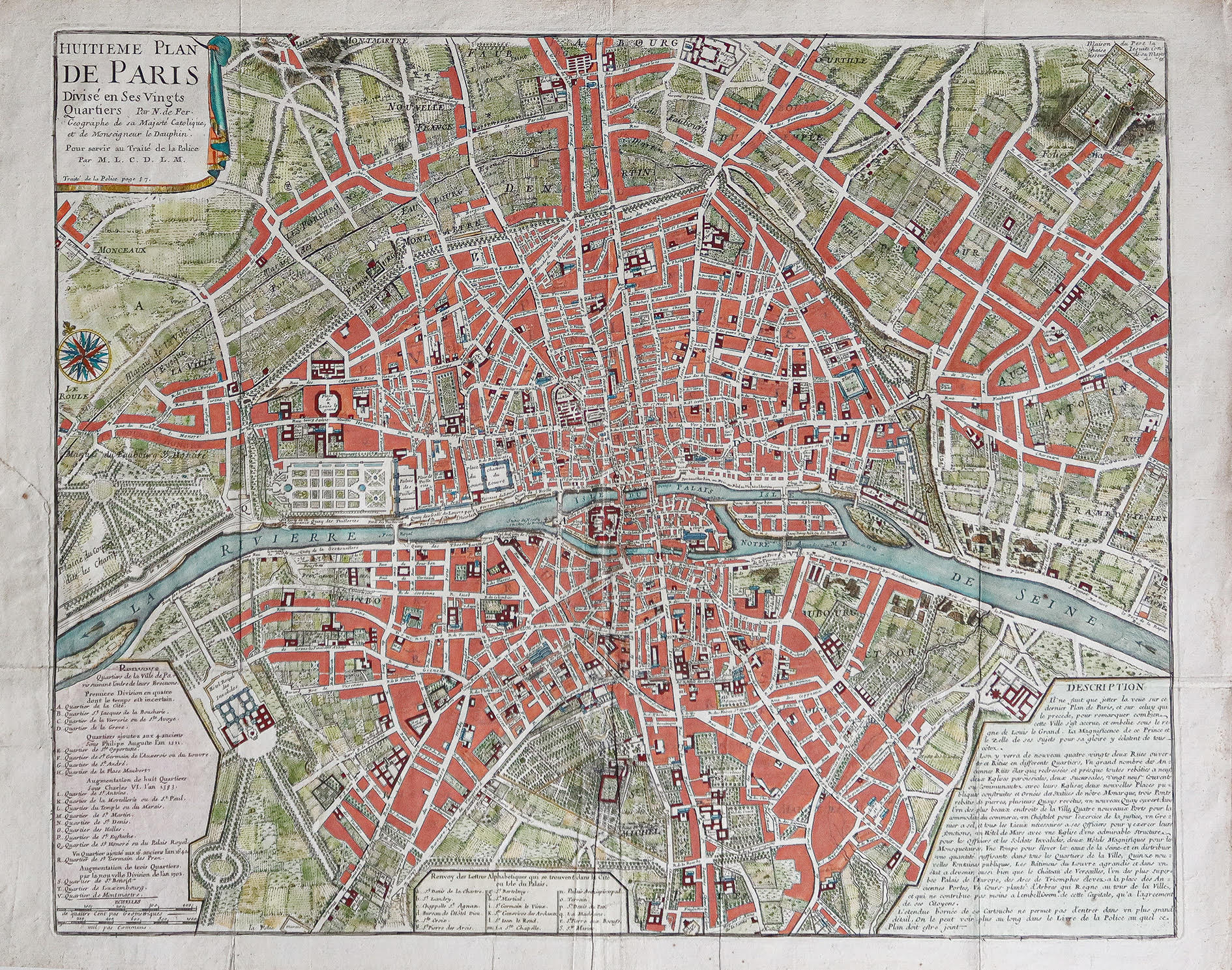 Les sept premières cartes ont été gravées par Antoine Coquart (1668-1707) à partir d’informations et de matériaux fournis par La Mare, tandis que Nicolas de Fer était le graveur de la huitième, qui était basée sur un plan de ville de l’époque.
