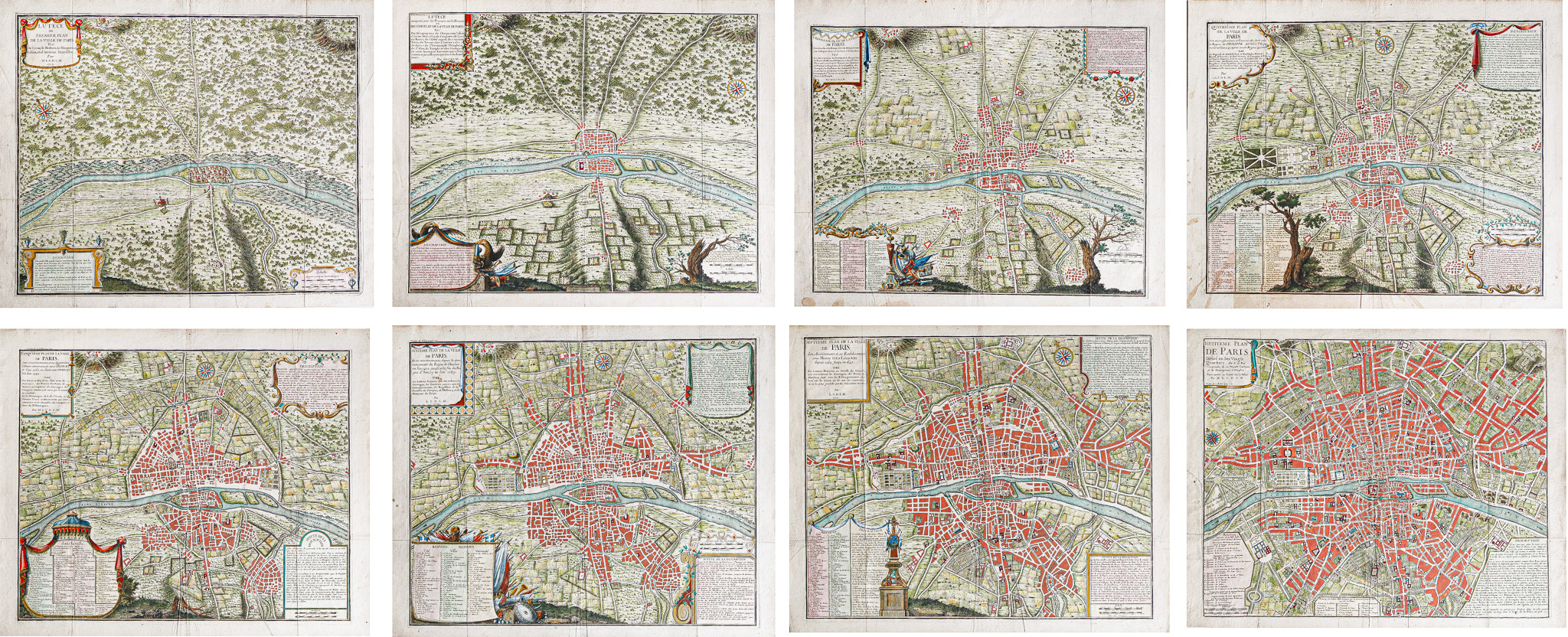 Huit Plans de Paris, de Lutèce à Paris divisé en ses 20 quartiers….