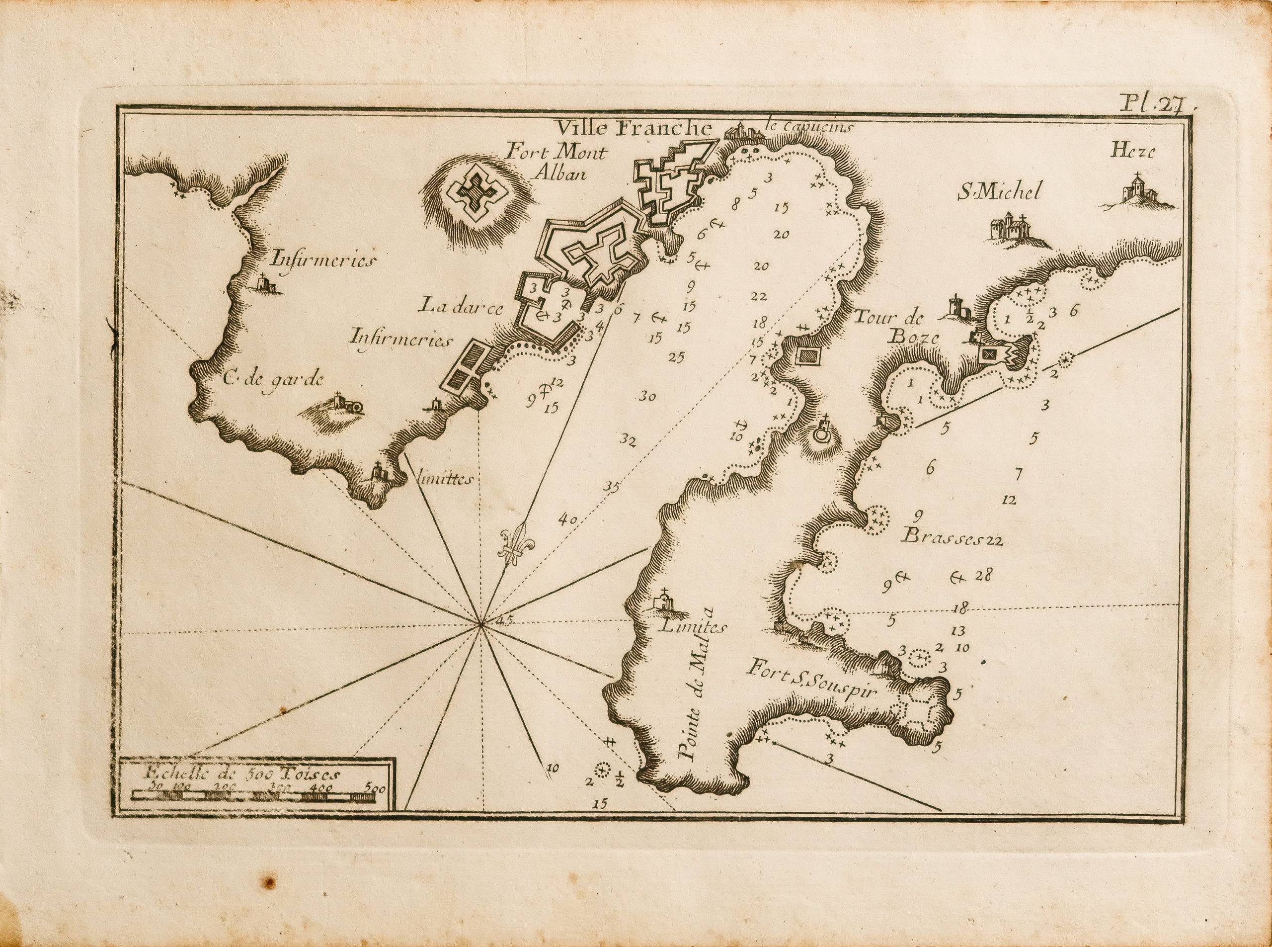 Echelle de toises. Boussole. Relevés des fonds marins.