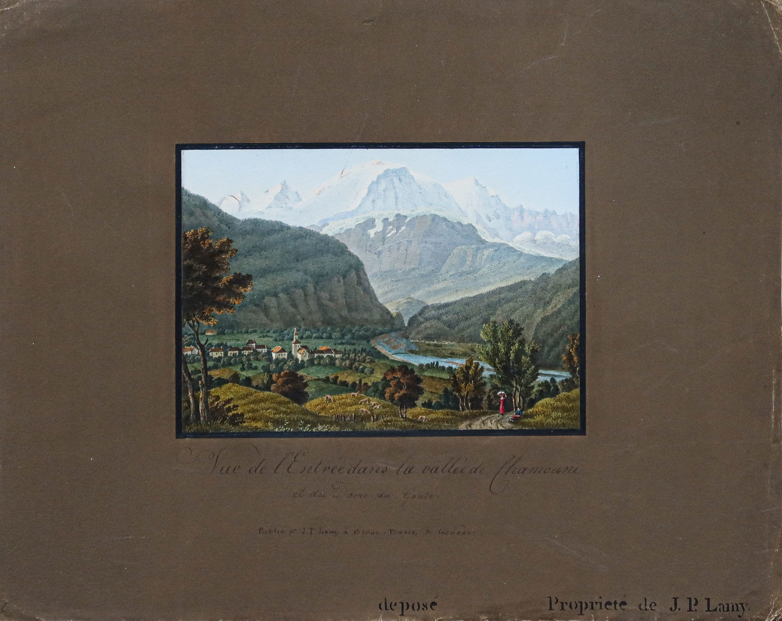 Montée lors de l’édition sur une feuille gouachée brun. Légende manuscrite avec impression de « la propriété de la maison d’édition J.P Lamy ».