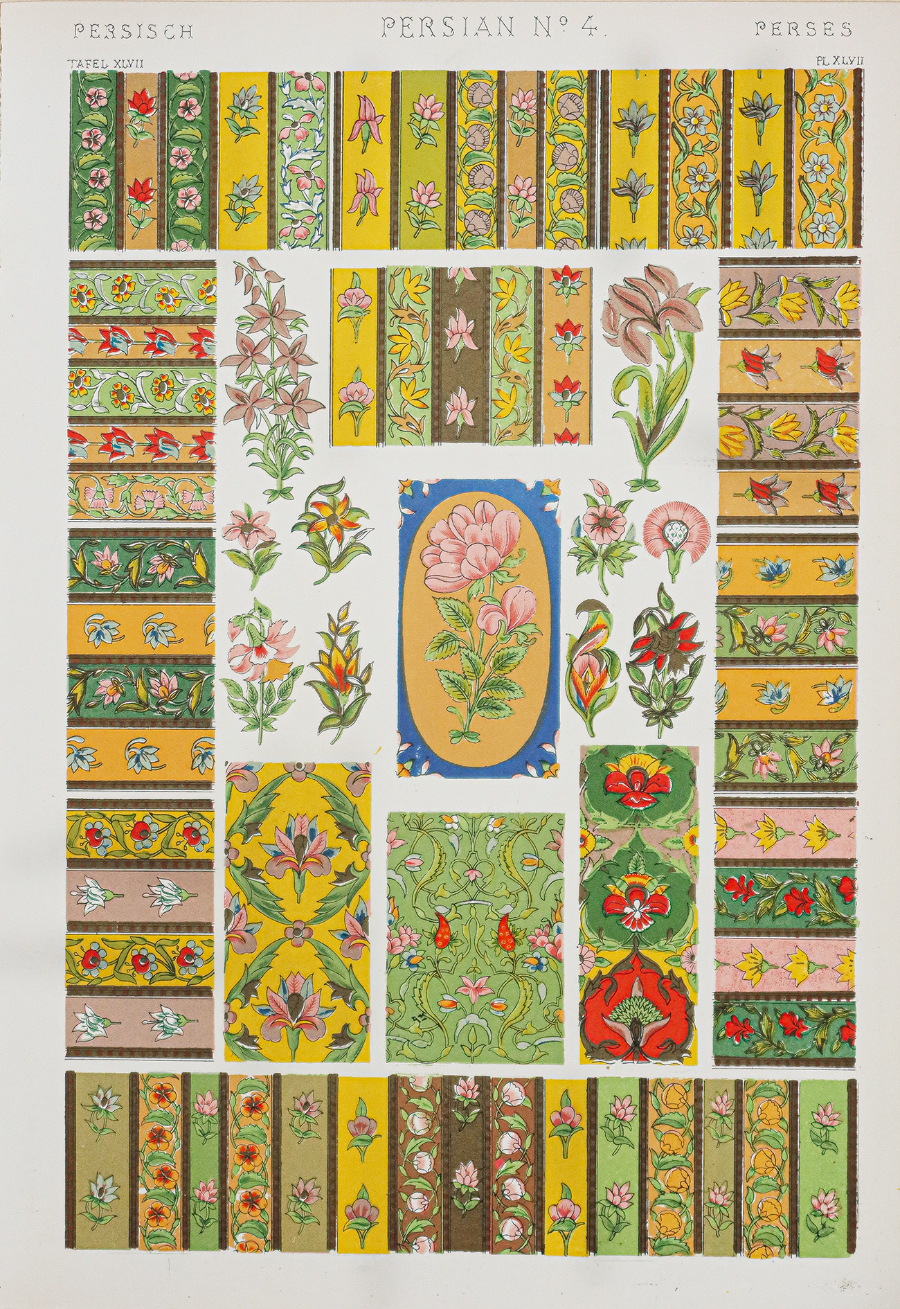 Remarquable impression en couleurs réalisée par les ateliers Firmin Didot. Les lithographes pouvaient utiliser jusqu’à 19 pierres lithographiques de couleurs différentes pour une même épreuve.