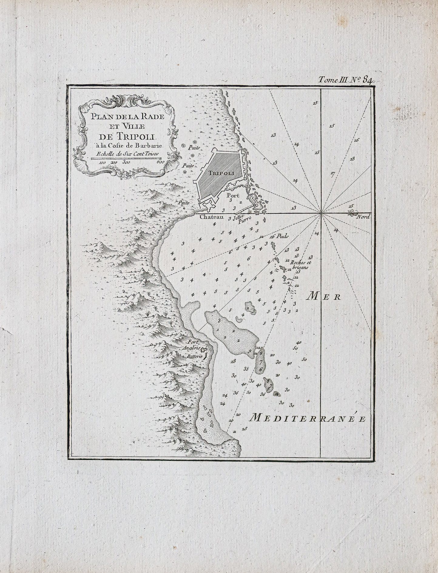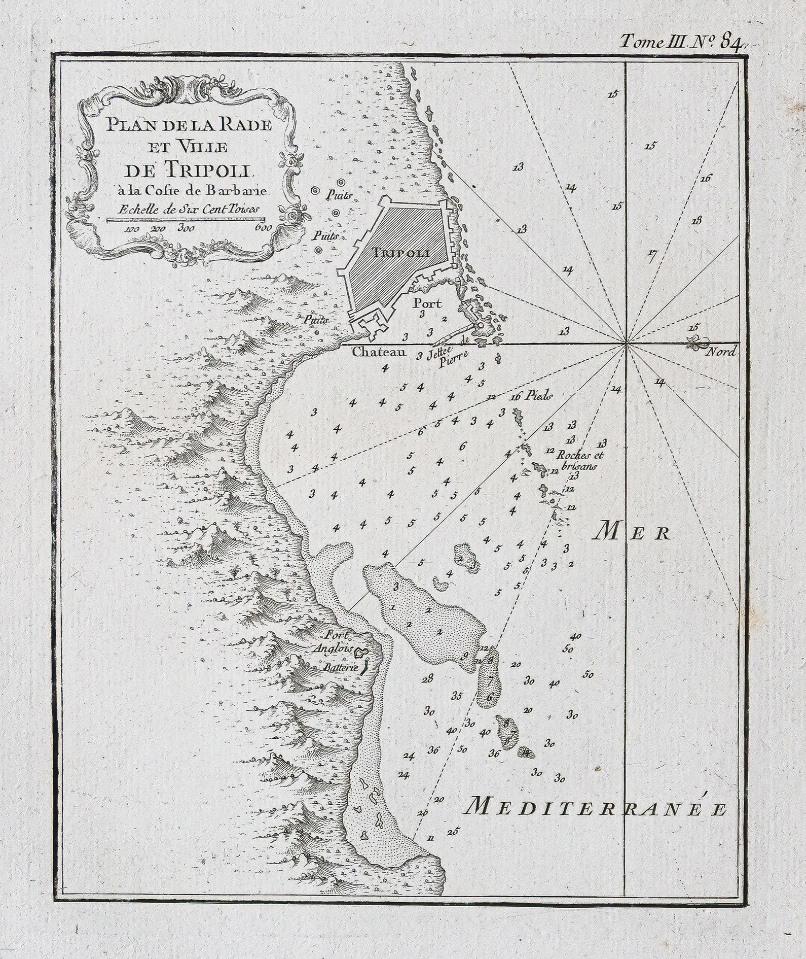 Plan de la rade et ville de Tripoli à la côte de Barbarie.