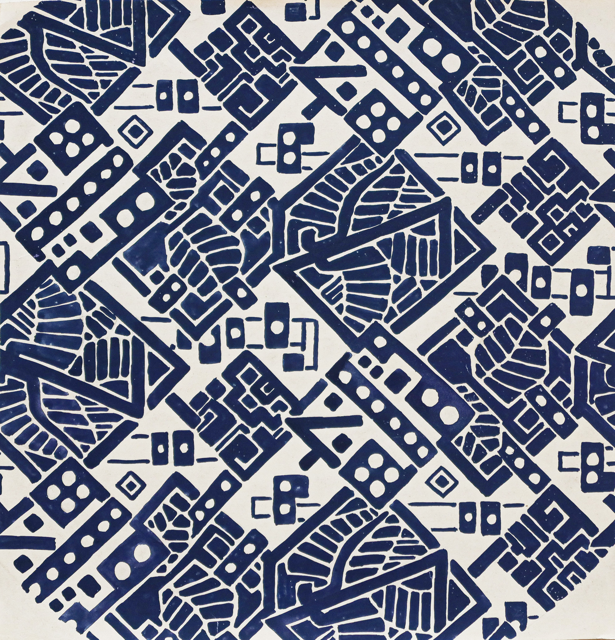 Gouache sur papier vers 1960 - 1980. Format papier : 64 x 49 cm. Peintre et créateur, Emile Rampelberg (1911-2001) ouvre son propre atelier de projets de textiles et papier peint en 1942 à Paris, qui deviendra l’un des plus important et influent d’Europe. Des œuvres de Rampelberg figurent dans de nombreuses collections françaises et étrangères.